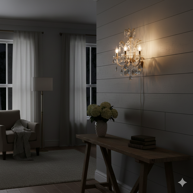 Crystal Wall Light brings luxury to bathrooms and feature walls. Crystal drops provide elegant sparkle when light reflects.