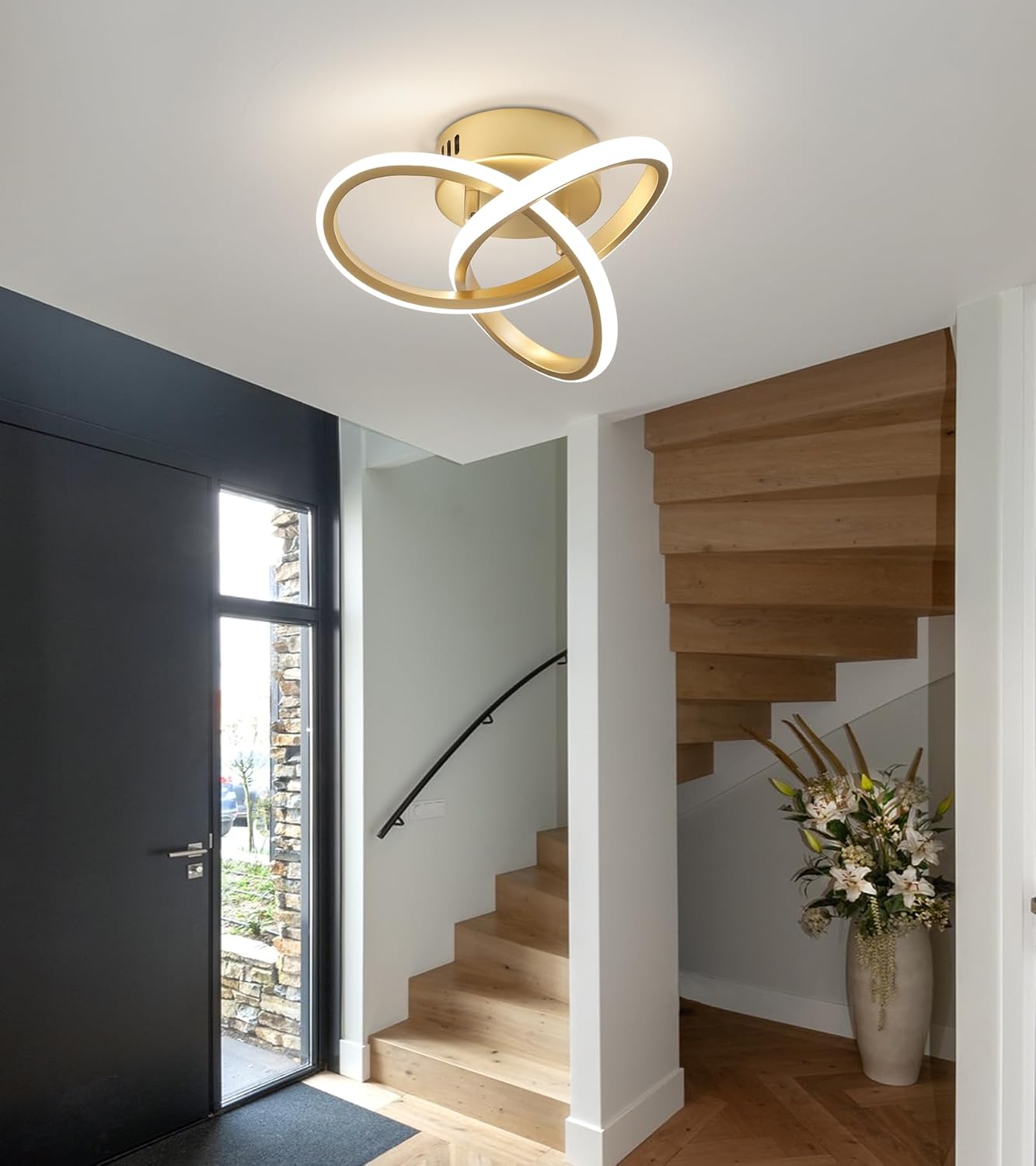 Golden Curves features elegant curved lines in warm gold finish, creating beautiful light patterns on walls and ceiling. Ideal for contemporary and transitional interiors.