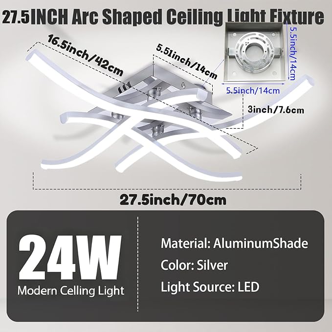 + Free ShippingWave pattern ceiling light with silver chrome finish