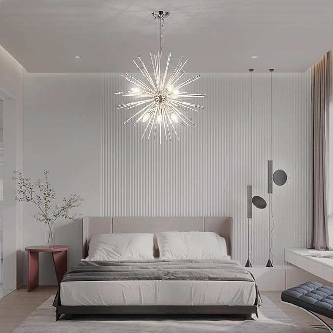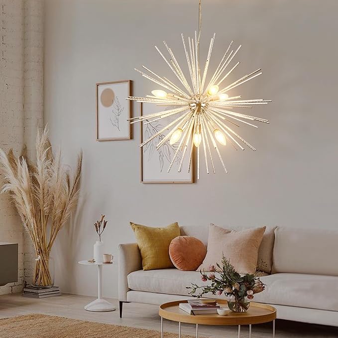 Sputnik Starburst features radical angular arms extending outward. Perfect for mid-century modern and contemporary interiors.